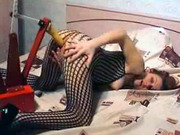 Fishnet girlfriend fucked by robot dildo